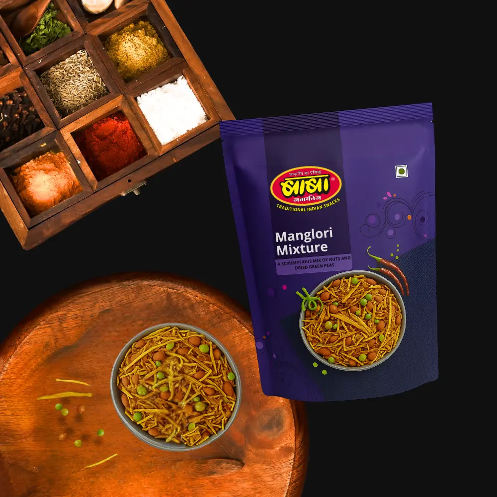 Manglori Mixture is a flavorful South Indian snack crafted with a mix of crispy elements, aromatic spices, and a hint of traditional seasoning, delivering a delightful burst of taste in every bite.